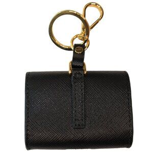 Prada black saffiano leather compact AirPod case with gold-tone hardware. Includes original packaging.