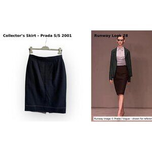 Tags: Prada archival, Prada S/S 2001, Prada runway skirt, Prada IT46, Prada contrast stitch, Miuccia Prada archival, vintage Prada pencil skirt, Prada navy skirt, Prada early 2000s