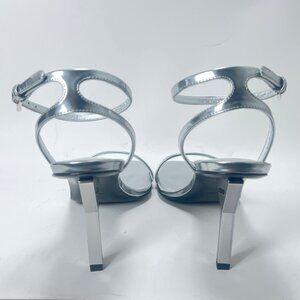 Prada Argento Donna Womens Sandals Metallic Leather Strappy Heels Size 38 US8