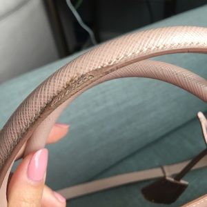 100% authentic from Saks Fifth New York in NYC - comes with all authenticity cards and dustbag. This is a WELL KEPT bag. Always in dust bag. The only thing is some of the piping at the handles has come apart and there is very little wear on some corners. Great nude blush color! Note the color depends on the lighting. These pics show the variation in lighting and color