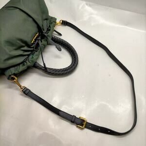 Chic and versatile, this authentic Prada bag is crafted from ardesia green nylon with luxurious leather trim and elegant gold-tone hardware. It features sophisticated braided leather handles, an adjustable shoulder strap for versatile carrying options, and a spacious interior with a secure zip pocket—perfect for keeping your essentials organized.