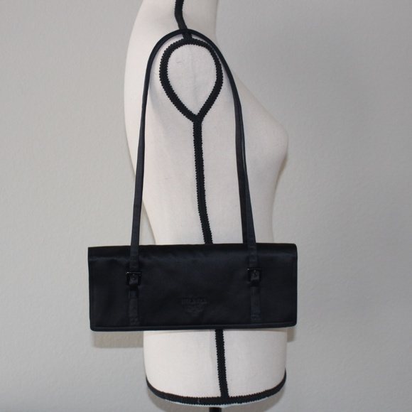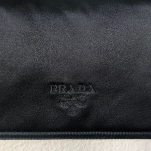 EUC-Authentic Prada bag. Satin fabric looks fabulous dressed up or with jeans & heels. Double shoulder straps w/a 12” drop. Expands to hold all your essentials.