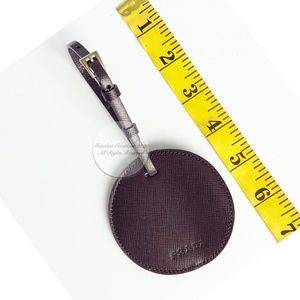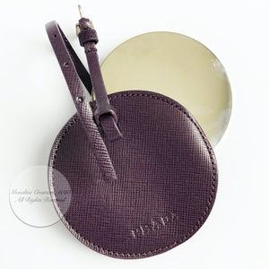 Authentic Prada Saffiano leather bag charm with mirror. Comes with box. Authenticated by Authenticate First (and copy of certificate will be included with purchase). Measures appx 6.75in L. Preowned with some signs of use & prior wear: clouding to areas on both side of mirror (see example, last photo).