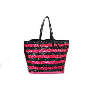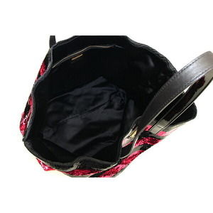 Prada Bag Sequins Pink Patent Border Black Tote Bag Shoulder
