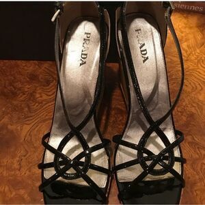 Prada Bamboo Wedge Patent Leather Sandals sz10/41