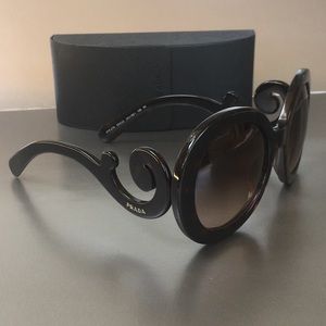 Prada SPR 27N 2AU-6S1 Baroque Swirl Havana Brown Women's Round Sunglasses.
