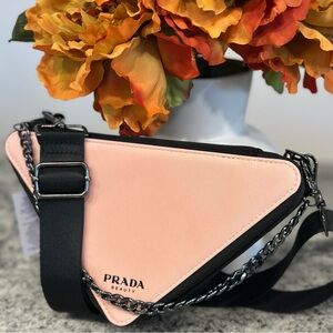 Elevate your style with this chic Prada bag in a soft pink hue. Perfect for any occasion, this bag combines elegance with functionality.