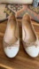 Prada Beige Canvas Leather Cap Toe “PRADA” Logo Front Flats 38