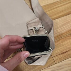 Elevate your style with this elegant Prada crossbody bag in a chic beige color. Perfect for any occasion, this bag combines luxury and functionality.