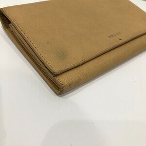 Prada Beige Leather Flap Long Wallet Sku#84452 (Gently used, corners rubbing)
