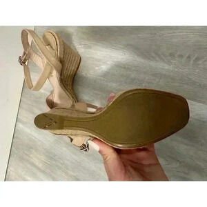 Prada Beige Patent Leather Espadrille Platform Wedge Ankle Strap Sandals Size 37
