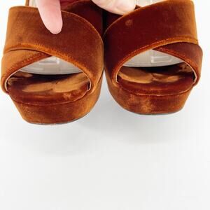 Prada's platform sandals have been crafted in Italy from plush velvet – the fabric of the season. Set on a chunky, vertiginous block heel, this pair features a crisscross toe and an a warm tobacco-hued ankle strap.