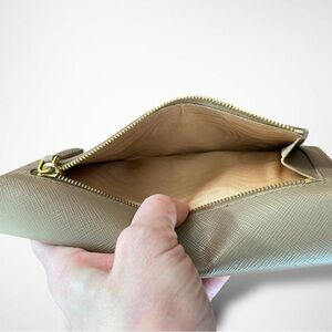 Please note a very mild fading of the prada stamp on the side of zip pouch. Zip pouch has a little coin dust (Pictured)