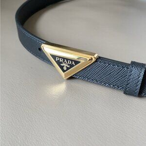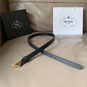 Prada Black Belt - Gold Triangle Iconic Hardware