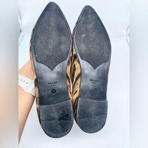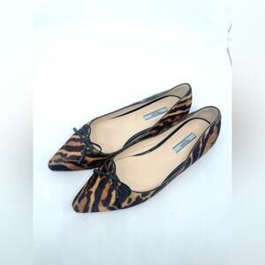 Prada Black Brown Leopard print calf hair Pointed toe ballet flats EU 39.5