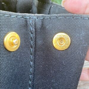 113: Chic Prada Canvas Canapa mini tote in black canvas. Features iconic logo design. Ideal for stylish outings. This item will come with a Prada dust bag and an unbranded insert for easy organization.