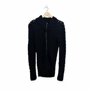 Prada Black Chunky Cardigan Jacket, Front Zip, Size 46 italy