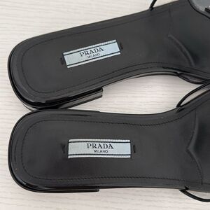 Prada Black & Clear PVC Flat Logo Sandals Size EU 37.5 US 7.5 Authentic Shoes