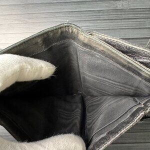 A minimalist essential from PRADA, this compact wallet is crafted from durable black nylon with sleek tonal detailing. Designed for everyday convenience, it features multiple card slots, a bill compartment, and a snap or zip closure (see photos for exact style).