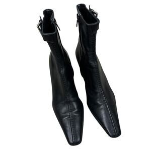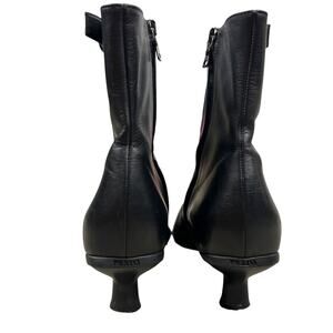 Prada Black Lamb Leather 90s Y2K Pointed Toe Zip Ankle Kitten Heel 7
