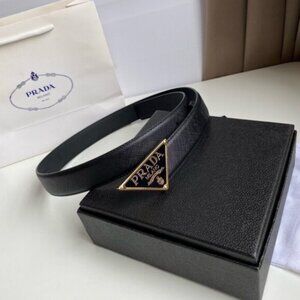 Prada Black Leather Belt - Gold Triangle Icon Buckle