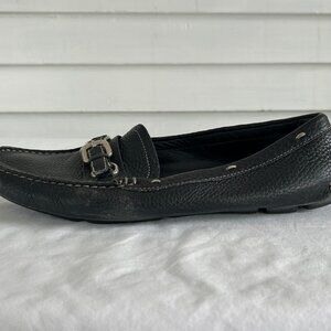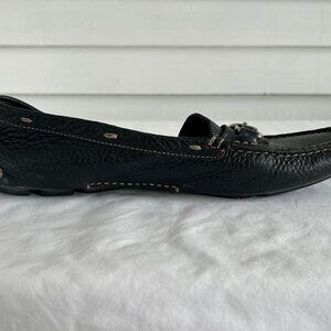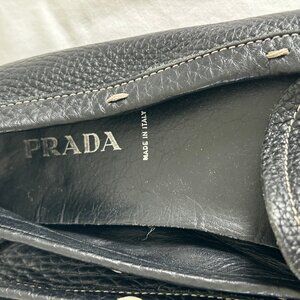 Prada Black Leather Bit Loafers Moccasins Driving Flats Pebbled Slip-On Size 38
