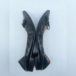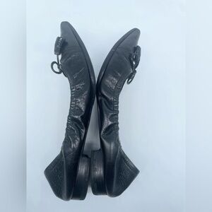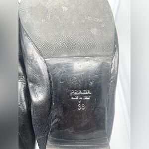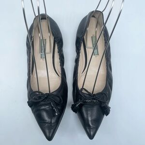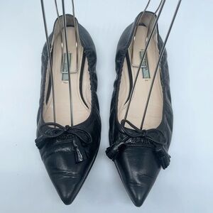 Prada Black Leather Cap toe logo embellish bow tie stretch ballerina flats EU 38