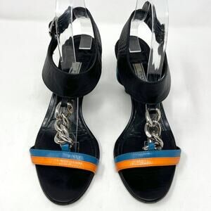 Prada Black Leather Chain-Link Colorblock Sandals – Size 37