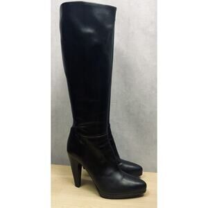 Prada Black Leather High Heel Knee High Boots Pointed Toe Size 38