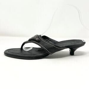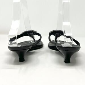 Prada Black Leather Logo Thong Kitten Heel Sandals Size 38.5 EU