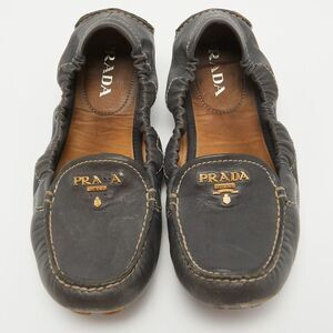 Prada Black Leather Scrunch Ballet Flats Size 36
