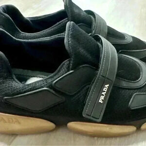 Prada Mens Cloudbust Sneakers Size US 7 UK 37.5 Black Gold Nylon Strap Trainers