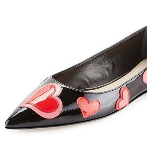 Prada Black Multi Heart-applique Pointed-toe Flats
