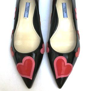 Brand New, Never Used, 100% authentic Prada Heart-Applique Pointed-Toe Flat in Black (Nero) color. US size 9 (EU size 39). It comes with original box, tags, dust bag, care and authenticity documentation.
