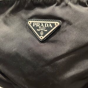 Beautiful Prada nylon backpack in black. Front zipper pocket. Buckle opening at top, with clean interior. Backpack straps are adjustable with buckles. This is preloved, and I see some minor leather wear at the buckle sites. MSRP $2350.