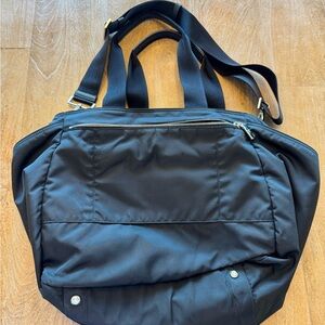 Stylish Prada tote bag in black nylon. Features a spacious design with sturdy handles. Missing diaper changing pad.