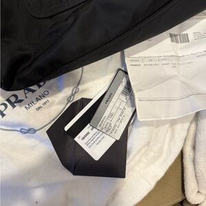 Prada nylon shopper. Comes with cards and receipt. Leather is fine. Zippers are fine. Few marks (see pics). Purchased from Nordstrom 5/27/18 and still in amazing condition.