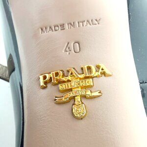 Authentic PRADA Mary Jane heels in glossy black patent leather. Made in Italy with a classic pointed toe, slim strap with buckle closure, and a high stiletto heel (~4"). Timeless silhouette that works for dressy, formal, and elevated everyday looks. European size 40, fits like US 9.5–10 depending on foot width. Leather-lined interior and sole with gold Prada logo stamp for luxury authenticity. Comes with original Prada dust bag.