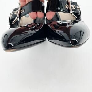 Prada Black Patent Leather Pointed Toe Mary Jane Strap Slingback Heel IT 40