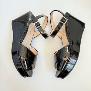 Prada Black Patent leather Wedge peep toe Criss cross sandals EU 40