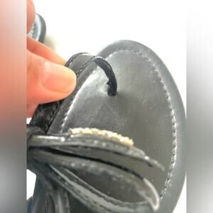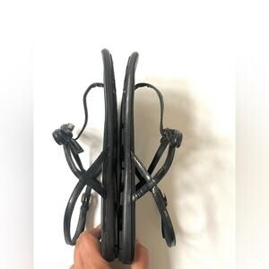 Prada Black Patent leather bow tie logo embellished T strap flat sandals EU 39.5