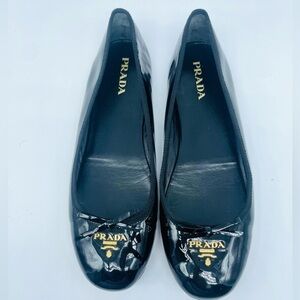 Prada Black Patent leather logo embedded ballet flats EU 39.5