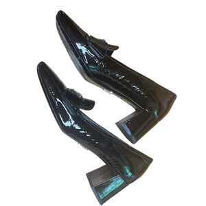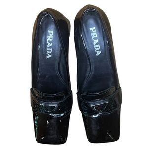 Prada Black Patent Triangle Logo Square Toe & Block Heel Pump Size 36