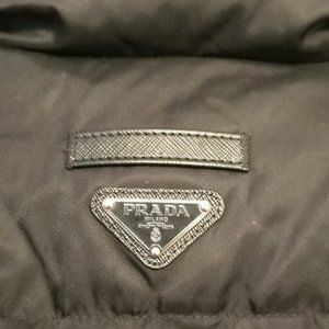 This authentic Prada coat is made of nylon exterior, polyester lining and down feather fill.