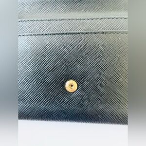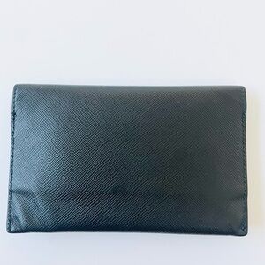 Prada Black Saffiano Leather Bi fold wallet card case logo embellished