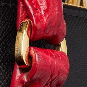 Prada Black Saffiano Leather Crocodile Double Zip Small Tote Bag