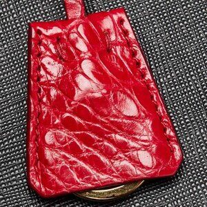 Handles: Double rolled leather handles and single flat detachable crocodile shoulder strap