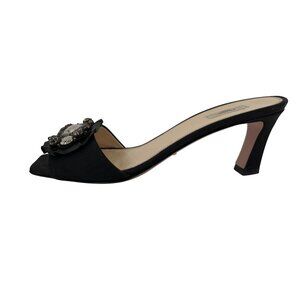 Prada Black Satin Embellished Open Toe Mules EU 36.5 6.5 US Made In Italy
