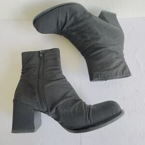 Prada Black Stretch Fabric Ankle Boots 9.5 Minimalist Block Heel Zip Italian lux