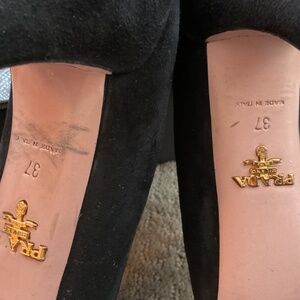 Beautiful black suede Prada ankle shoe bootie. Slight wear, good condition.